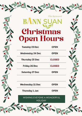 Before we take a short break to celebrate with our families, we invite you to book your reservation early and enjoy a warm, delicious meal with us. Our tables fill up quickly during the holiday season, so secure your spot and savor your favourite Bann Suan dishes before the break!